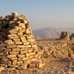 バフラの砦は、オマーン内陸部のジェベル・アフダル山麓に位置する巨大な城塞で、1987年にユネスコの世界文化遺産に登録されました。日干し煉瓦で築かれたこの砦は、イスラム以前の時代に起源を持つとされ、12世紀から15世紀にかけてバヌ・ネブハン朝のもとで現在の姿に拡張されました。城壁、塔、モスク、住居などが一体となった複雑な構造は、当時のオマーンにおける建築技術と防衛戦略の高さを物語っています。
